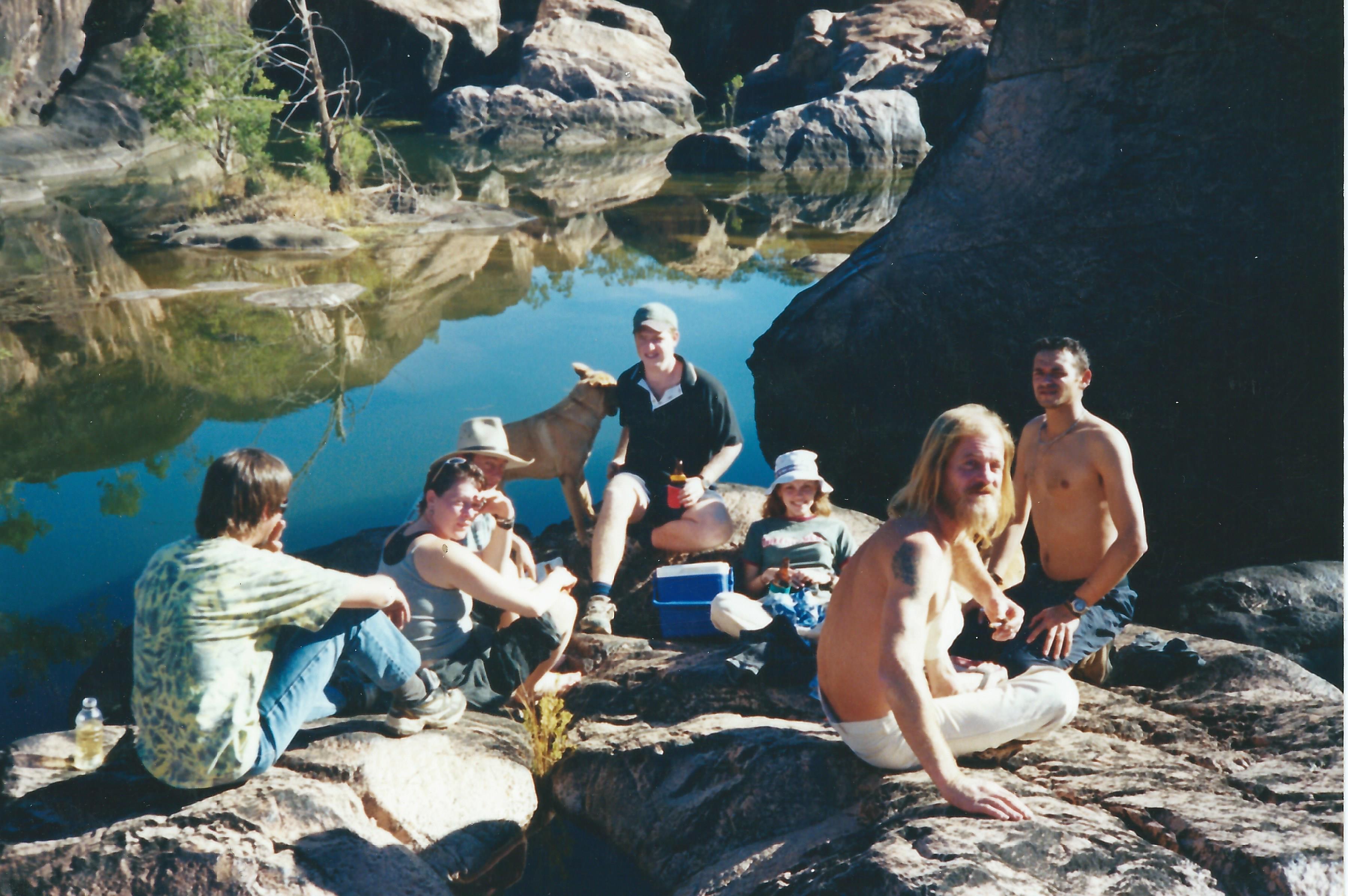 Speaking of music, one night in an amazing national park, that we went to regularly, not far out of town, something I will never forget happened. The park had this massive gorge running through it. It took quite a while to walk down to the riverbed so it was very deep. It had massive, colourful, stone cliffs on either side. The river wasn’t running so there were pools of water scattered around the rocky riverbed. The land scape looked prehistoric with huge boulders scattered here and there. It was awesome. I met this Greek, backpacking girl at the top pub one night and we decided to stay at the gorge overnight.