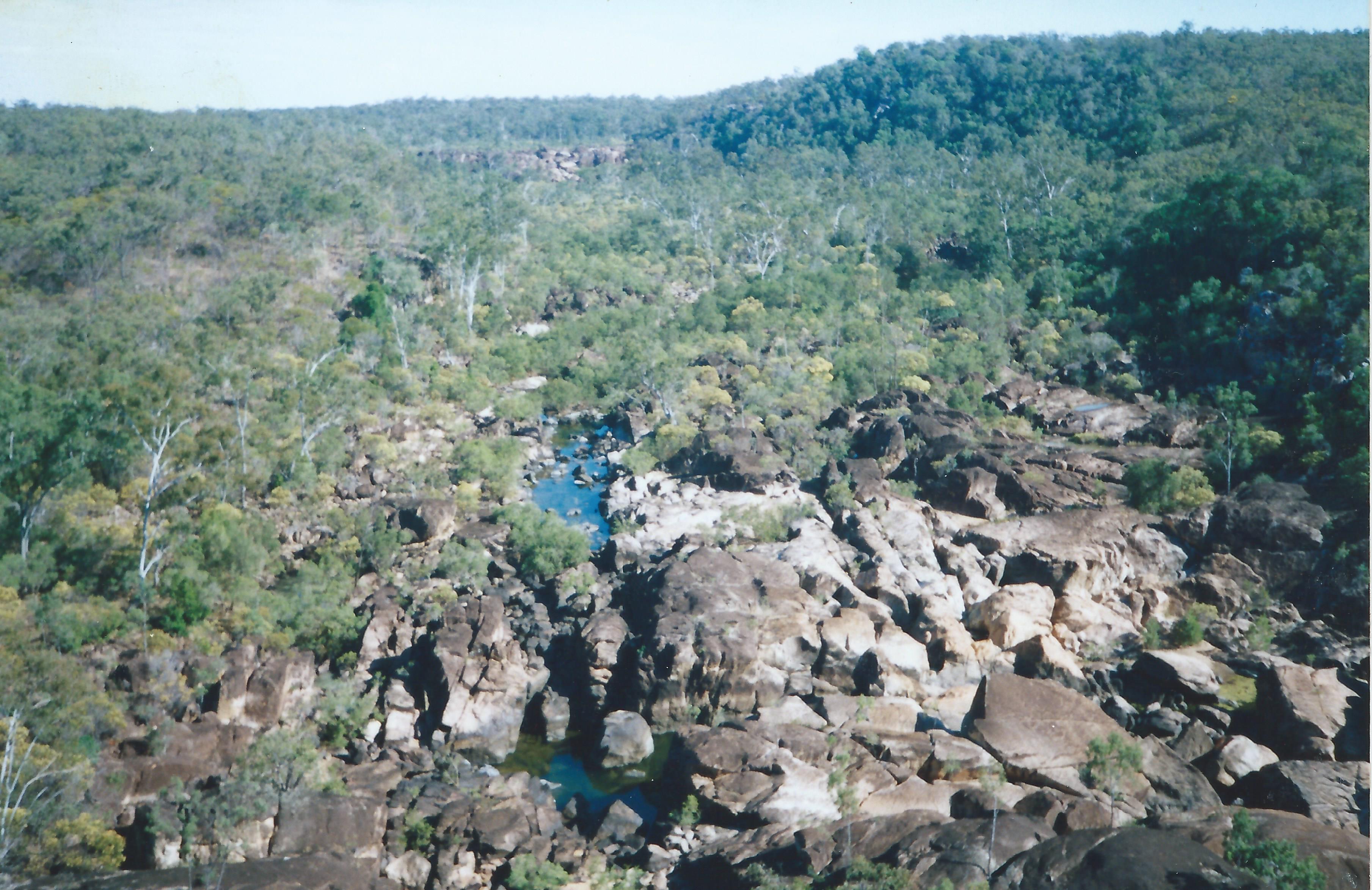 This was an old gold mining town. Not much left of it now but you could see the ruins of the old stone buildings and there was a lot of “bits and pieces” left lying amongst the dirt. There were, however, lots of mine shafts dotted amongst the trees and bushes. You had to be careful where you walked. There was the odd gold prospector, that had re-staked claims, but you kept your distance from them. You didn’t want to turn up dead,down the bottom of an old shaft, If you know what I mean!! The original miners had built a rock wall across a heap of sheet stone to form a dam. The water would run down the hill and pool in the man-made dam. It was their only source of water. Now the dam is used by wild horses, you see them most mornings, coming for a drink. I did go exploring a couple of the mines with another guy who was camping there as well, found no gold but it was fun anyway. We did find a heap of really old machinery at the bottom of one shaft and just beyond the machinery, it looked like the shaft disappeared down to the centre of the earth. Even with torches we couldn’t see the end of the shaft, just blackness. We didn’t venture any further, spooky!! I did find some very small bits of gold around the mounds of dirt at the top of one mine. I think we stayed there for about a week. I also used this place as a “hide out” on one of my return trips but I’ll cover that further on. This was yet another amazing part of Australia.